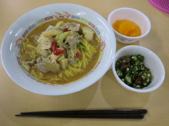 味噌ラーメン🍜・オクラのなめこ和え・みかん缶🍊
